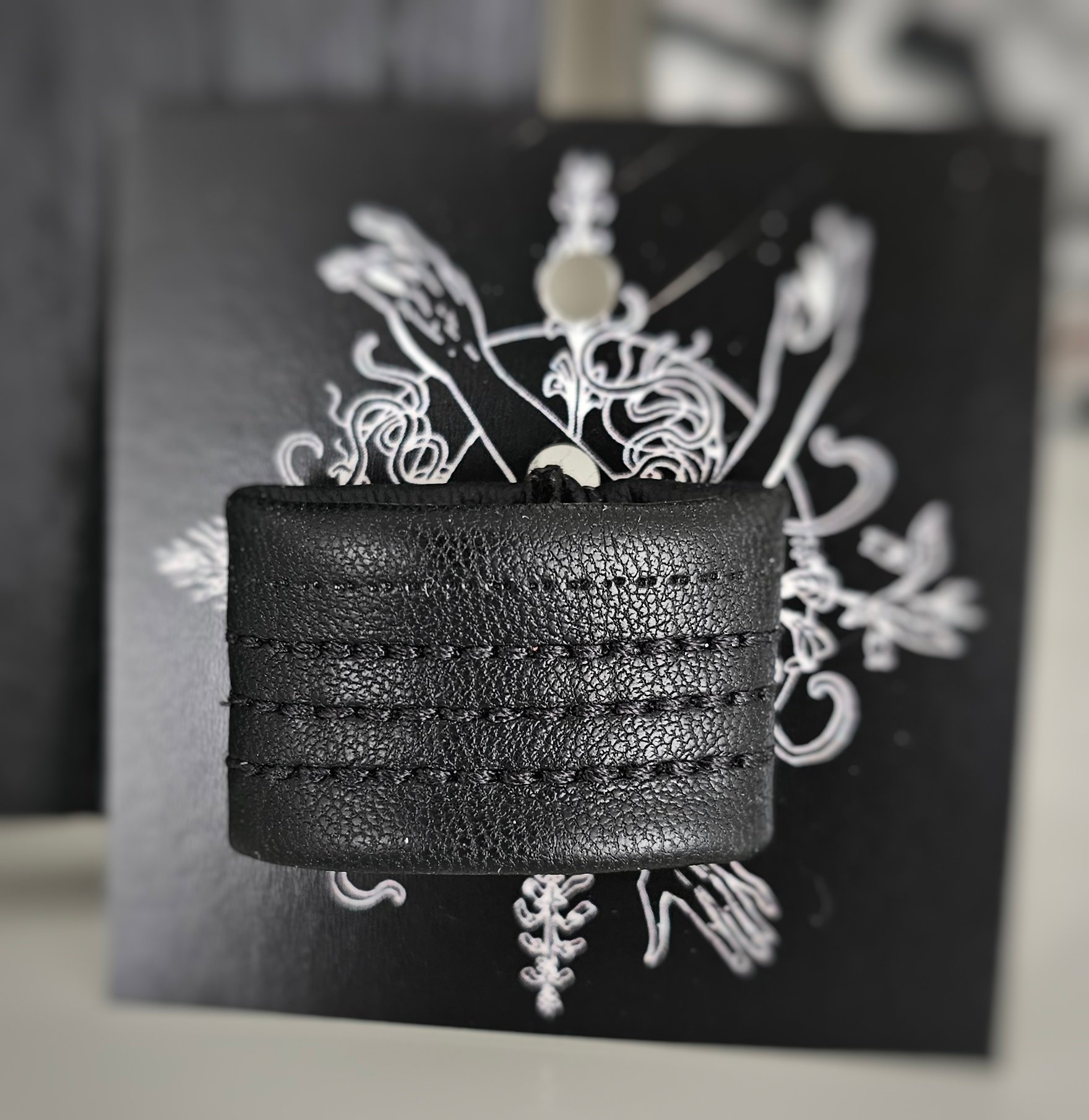 These supple, ultra comfortable black vegan leather rings are striking statement pieces that augment any wardrobe style. UNISEX. Waterproof.