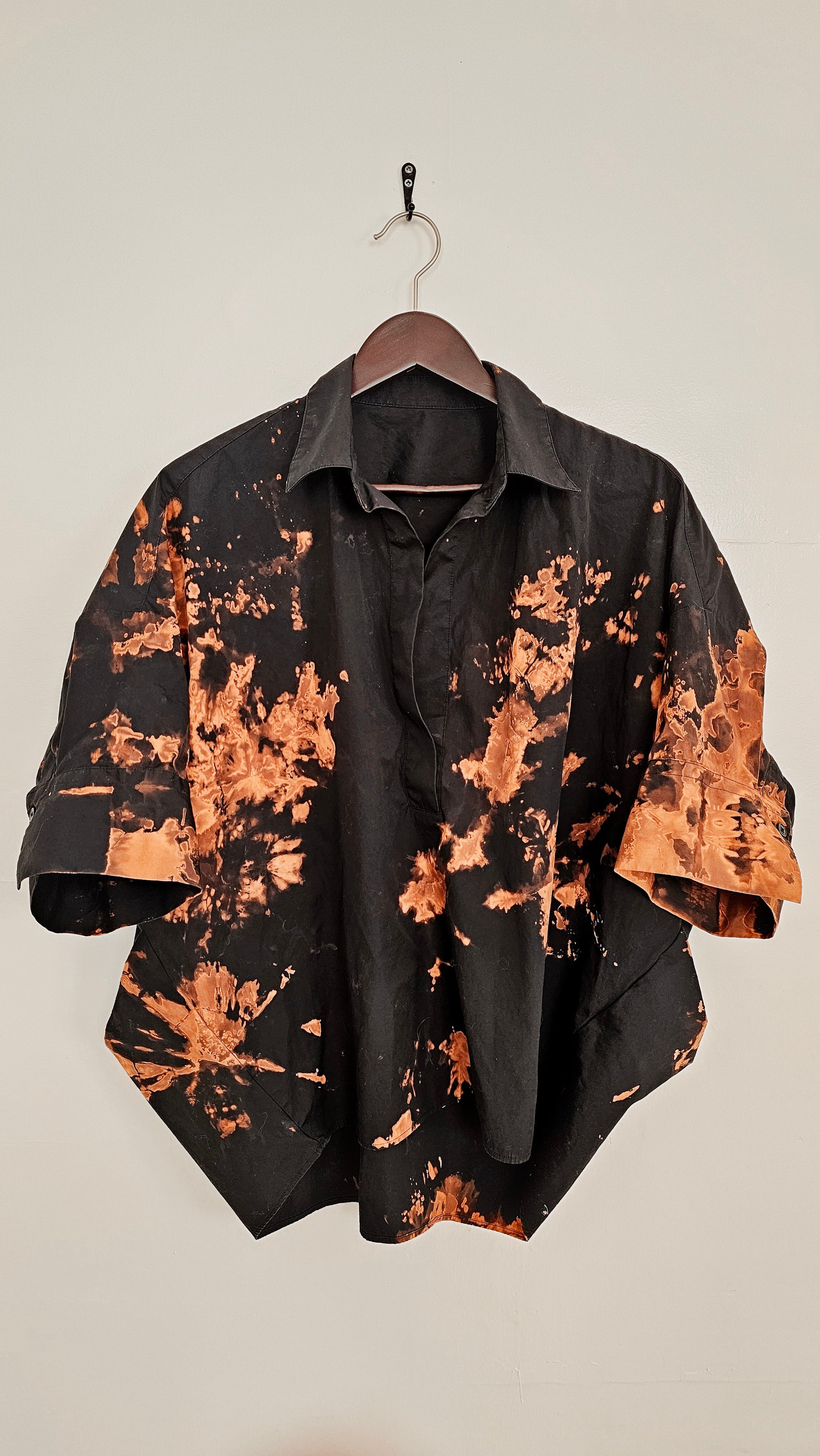 LIMINAL Goth-friendly tie dye reverse dye black boxy blouse